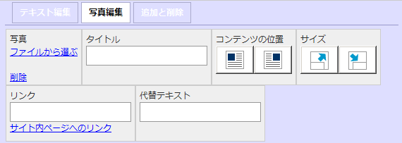 | 代替テキスト | 写真が表示できない場合に、写真の替わりに表示されるテキストを入力します。 |
