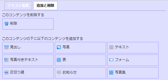 不要なコンテンツを選択して、削除ボタンを押します。