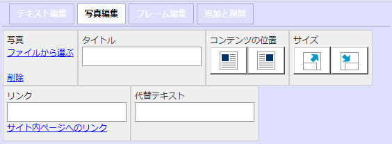 | 代替テキスト | 写真が表示できない場合に、写真の替わりに表示されるテキストを入力します。 |
