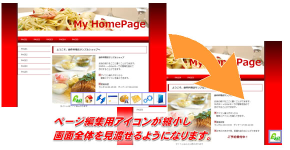縮小しホームページ全体が見渡せるようになります。